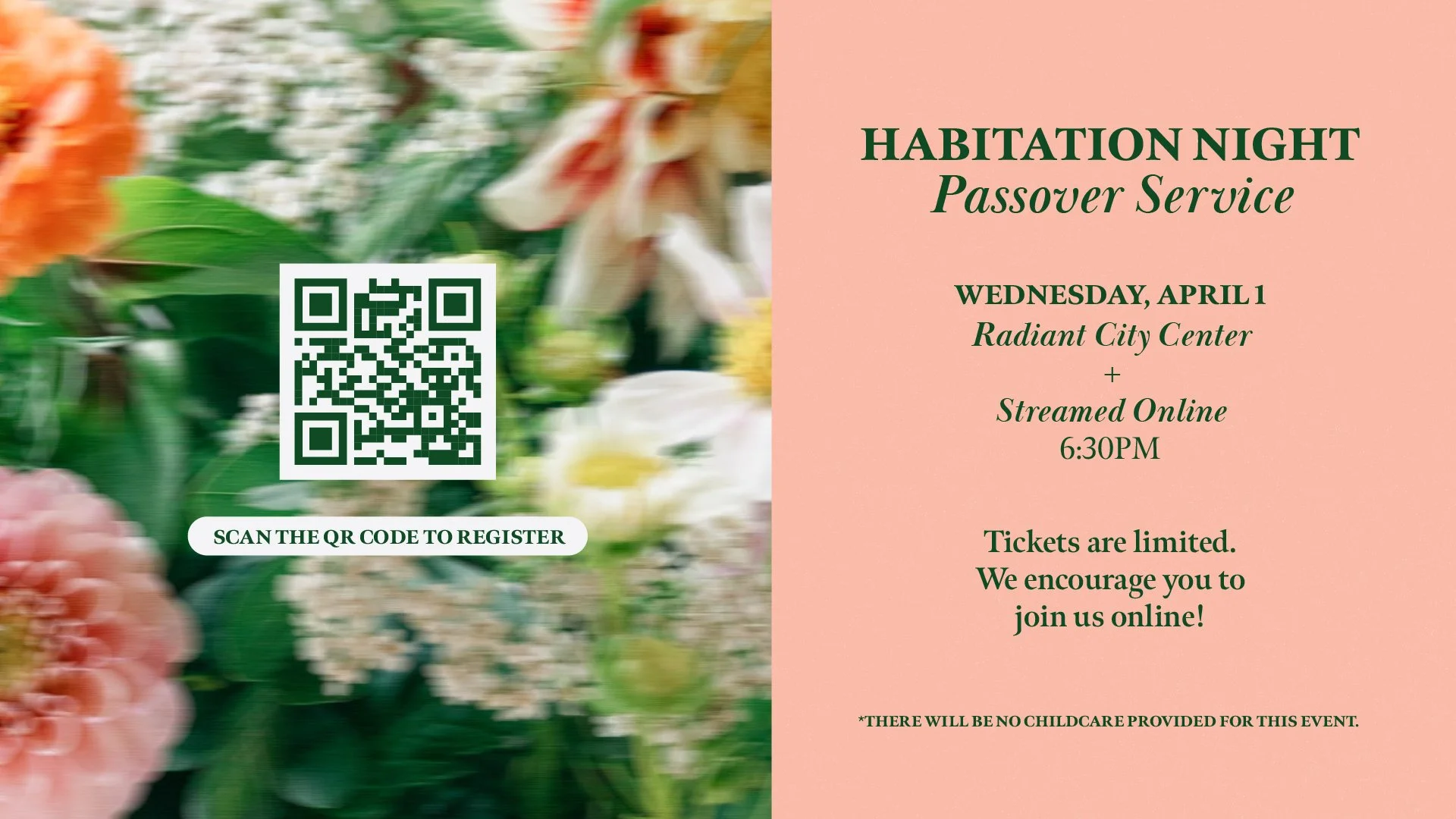 As we prepare our hearts for Easter, we invite you to join us for a Passover Habitation Service at 6:30PM on Wednesday, April 1. Together, we will honor our Passover Lamb, Jesus, through a special service with a focus on Israel. Don’t miss it!
